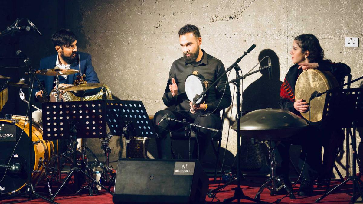 As Time Unfolds explores different connotations of time, reflecting on our connection to time in a place as complex as Palestine. The performance considers the rhythm of existence within Palestinian life, a rhythm preserved despite the jarring effects of a harsh reality that consistently seeks to pull people out of time and place. The music ventures beyond Palestine through other rhythmic cultures in order to connect through rhythmic patterns and movements; a rhythmic voyage that shows how we can cross the created boundaries of time.